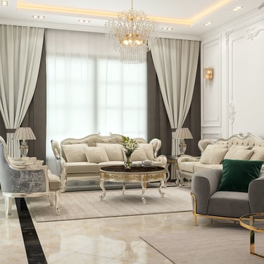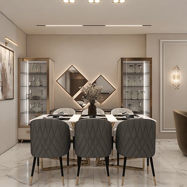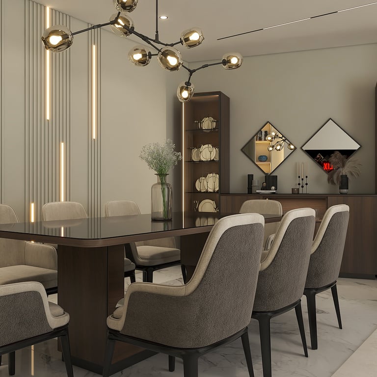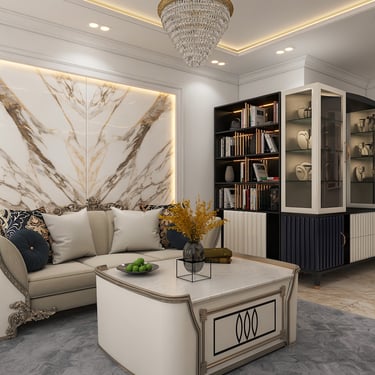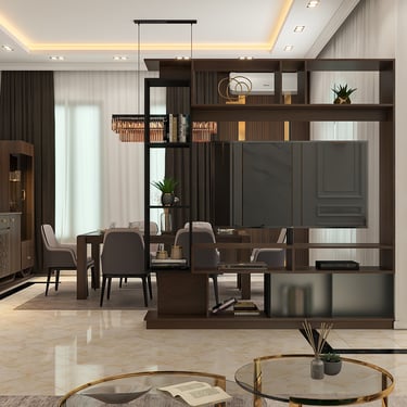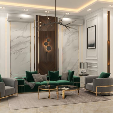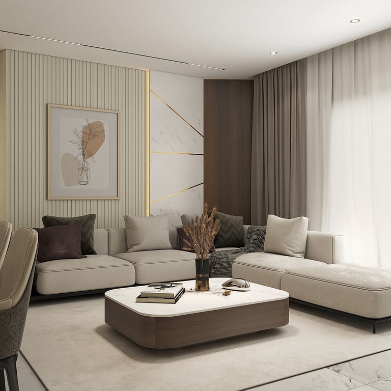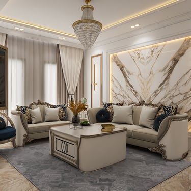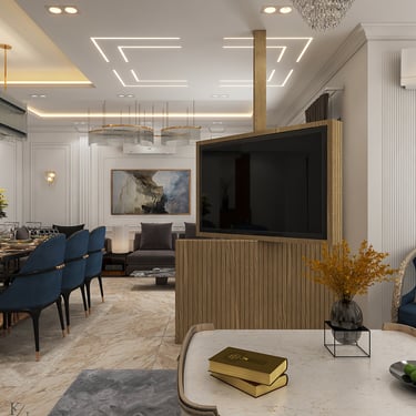 تصميم غرف الاستقبال والمعيشة والسفرة.