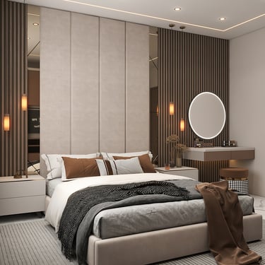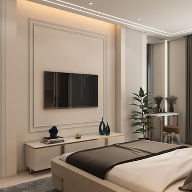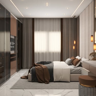 تصميم غرف المعيشة والسفرة وغرفة الماستر.