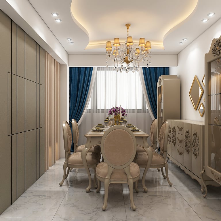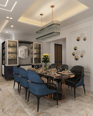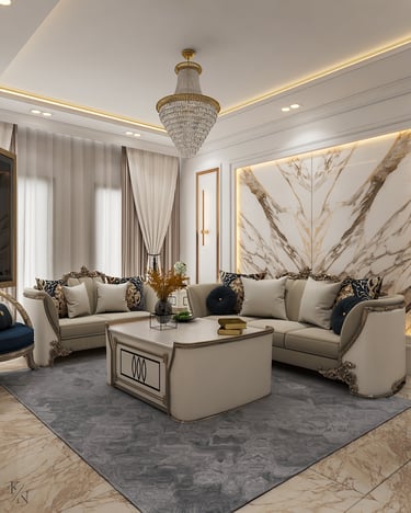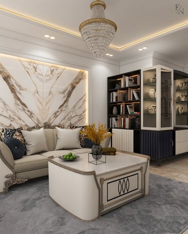 Designing a reception area, living room, and dining room of an apartment in Port Said.