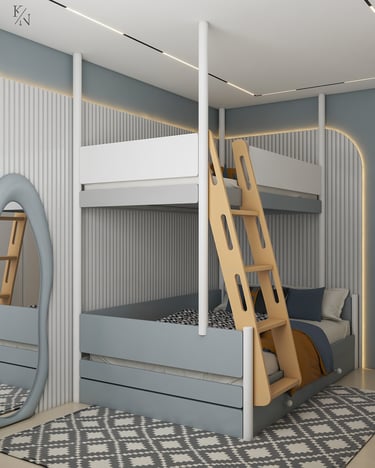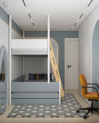 Designs of the master bedroom and children's room in a villa located in Cairo.