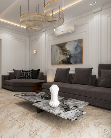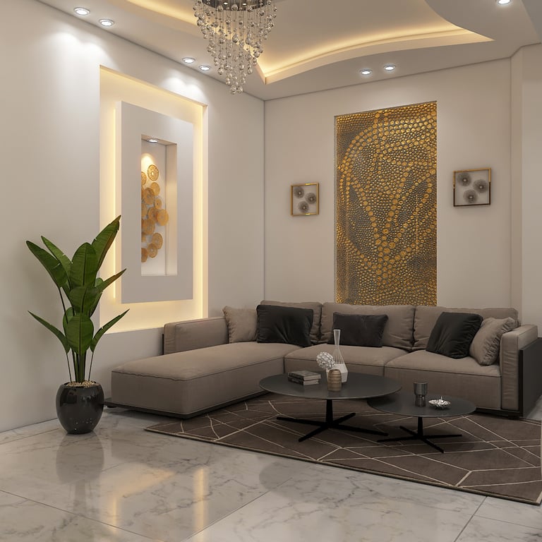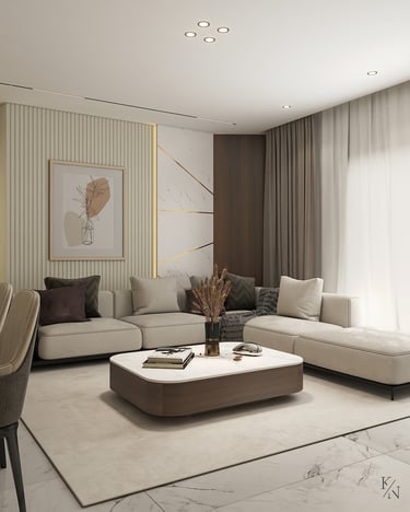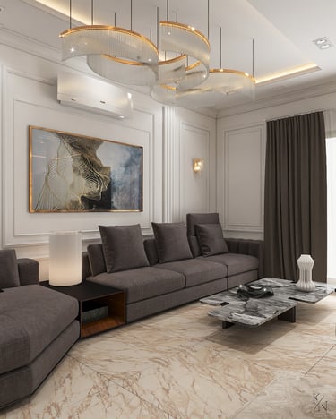 Designing the main rooms of an apartment in the 5th Settlement in Cairo.